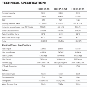 | Model | HXHP-C-30 | HXHP-C-50 | HXHP-C-75 | HXHP-C-100 | HXHP-C-150 | HXHP-C-200 | HXHP-C-300 | HXHP-C-400 |